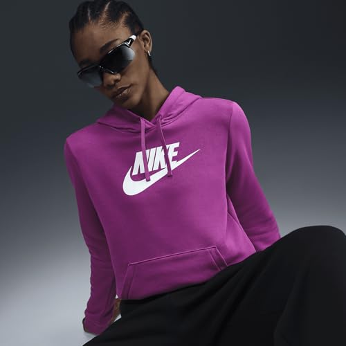 HOT ! Nike Sportswear Club Fleece Women's Logo Pullover Hoodie (DQ5775-518, Hot Fuchsia/White) Size Small