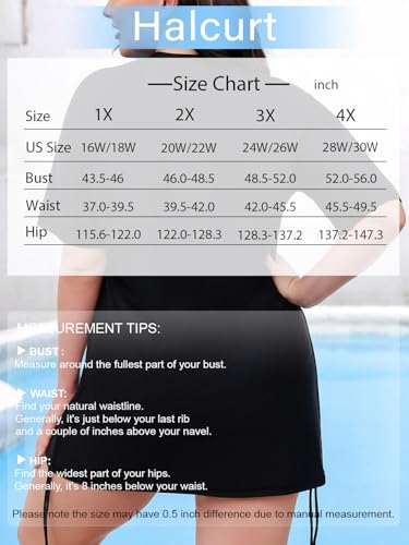 HOT ! Halcurt Women's Plus Size Half Zip Short Sleeve Rash Guard Swim Top Drawstring Swim Shirt UPF50+ Swimsuit