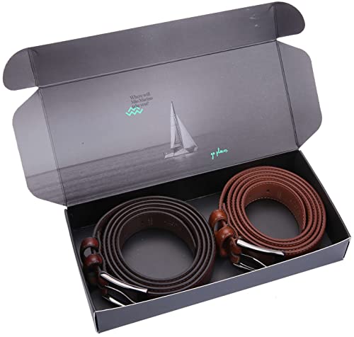 HOT ! Marino’s Men Genuine Leather Dress Belt with Single Prong Buckle - Slate Black/Tan Brown - 56