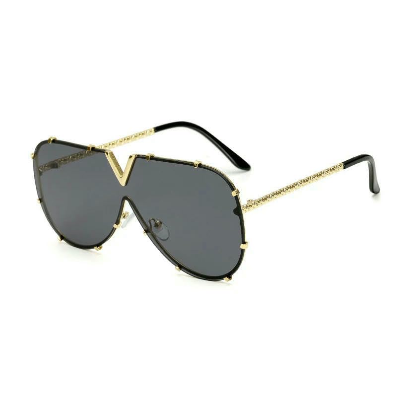 HOT ! Sunglasses Men'S Large Frame Metal Sunglasses Women'S Fashion Oversized One-Piece Uv400 Eyewear