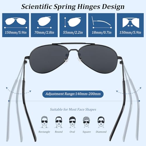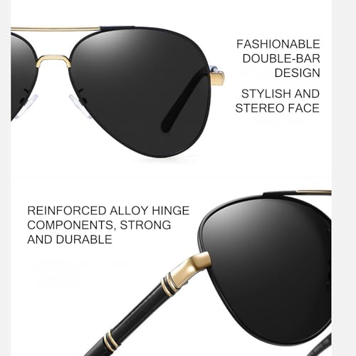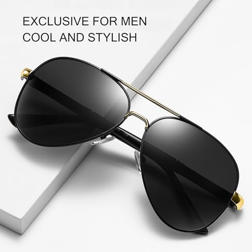 • Comfortable and Durable Design: These men's sunglasses feature a durable metal frame that is lightweight yet sturdy. The metal hinges add a sleek, modern look while ensuring long-lasting durability. The adjustable silicone nose pads and curved temple arms provide a comfortable, anti-slip fit, making them ideal for active lifestyles and long wear.