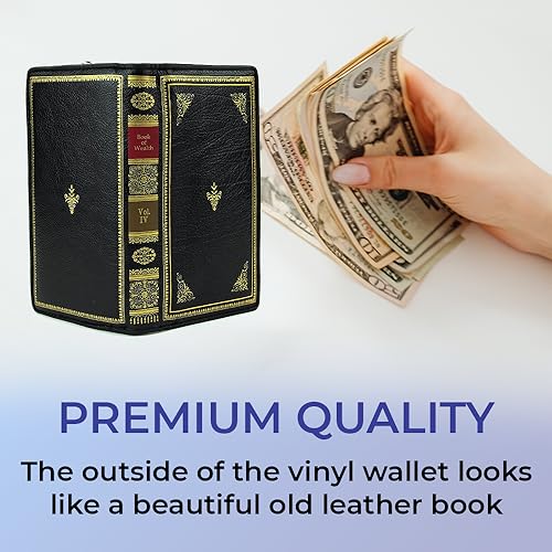 • NO ORDINARY WALLET Calling all book lovers! This quality vinyl wallet’s design is inspired by vintage, gold embossed, genuine leather books. The wallet’s unique and fashionable stylings are sure to draw compliments and “Where did you get that?” questions. Make a literary statement each time you carry this holder.