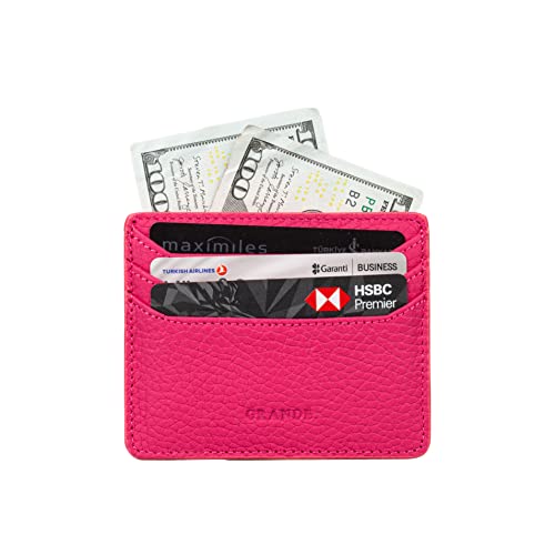 grande 3633 Genuine Leather Card Holder For Women and Men Super Slim Minimalist Small Snap Wallet (Pink) 3