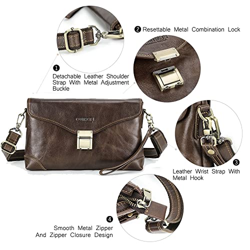 Contacts Mens Leather Code Lock Clutch Bag, Travel Anti Theft Clutch Wallet for Men 8.3" iPad Crossbody Purse Wrist Handbag 5