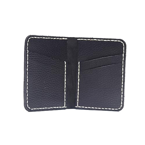 New style HandMade Hand-sewn leather card bag wallet large capacity multi-slot folding short style wallet (BLACK) 5