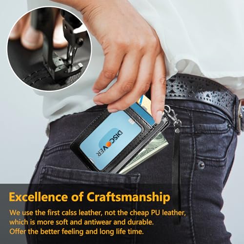 • Versatile Use: Card holder is crafted from premium leather and tight stitching for resistance to abrasion and tear.Use it with a wristlet or attach your keys for added convenience, making it a fashion-forward and cute accessory for everyday use.Whether you're running errands or going out with friends, card holder wallet is a combination of style and practicality