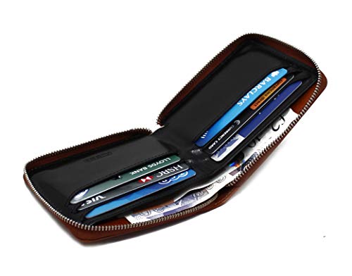 Ricco RFID Blocking Full Zip Around Leather Billfold Wallet For Men S12 Honey Black 6