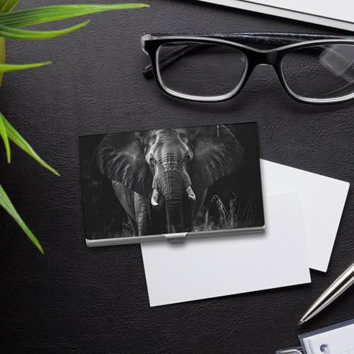 African Elephant Black And White Business Card Holder Alloy Multi Wallet Credit Card ID Pocket Name Case 3