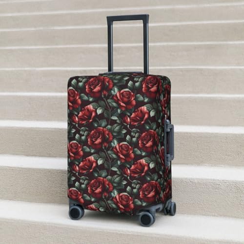 Vintage Red Rose Print Travel Luggage Covers, Washable Suitcase Covers Protector for Luggage 18-32 Inch High Elasticity 7