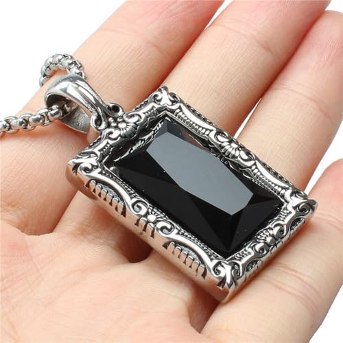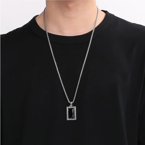 HOT ! YWMAN Gothic Black Onyx Square Necklace, Rectangle Black Stone Pendant Necklace with Ornate Silver Frame, Goth Jewelry Gift for Men Women