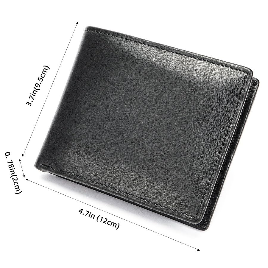 Leather Wallet for Men, Slim RFID Minimalist Credit Card Bifold Wallet with 2 ID Windows (Black) 7