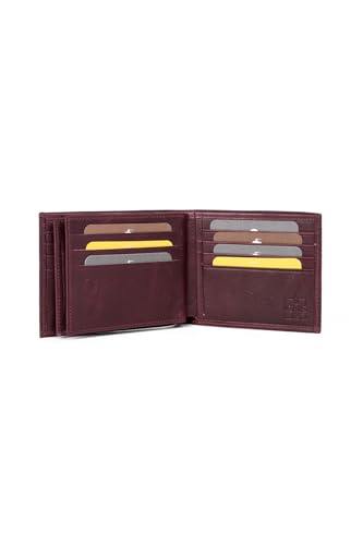 Genuine Leather Double fold Burgundy Fourfold Wallet for Men RFID Blocking - Gifts for Him (Essential Spinel) 7