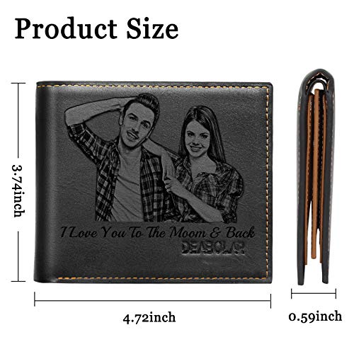 Personalized Wallets for Men,Custom Photo Wallet Engraved,Trifold Leather Wallet (Black) 5