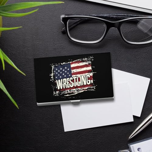 Vintage Wrestling U.S.A Flag Business Card Holder Slim Credit Case Pocket Name Case Wallet for Men Women 3
