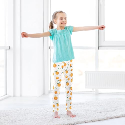 ALAZA Girls' Leggings Children's Yoga Pants Skinny Printed Dance Orange Polka Dot Comfortable 4T 6