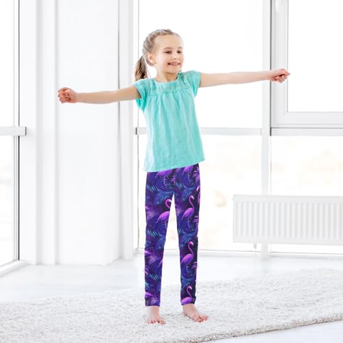ALAZA Girls' Leggings Children's Yoga Pants Skinny Printed Dance Flamingo Purple Comfortable 4T 6
