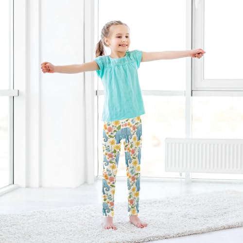 HOT ! Wusikd Elephants Girls' Leggings Toddler Doodles Colorful Daisies Kids Yoga Pants Dance Active Tights 4T