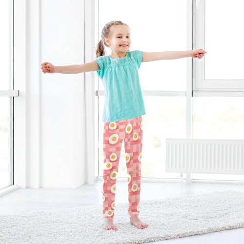 Fried Eggs Girls' Leggings Toddler Doodles Checkered Red Kids Yoga Pants Dance Active Tights 4T 7