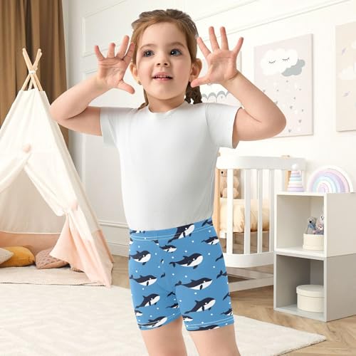 Cartoon Killer Whale Print Girls Shorts Elastic Waist Sports Shorts Girls Leggings Pants for 4-10 Years 4