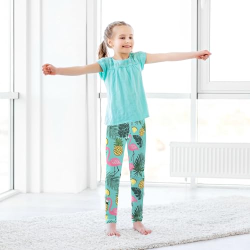 Flamingo Palm Leaves Girls' Leggings Toddler Doodles Pineapples Kids Yoga Pants Dance Active Tights 4T 5