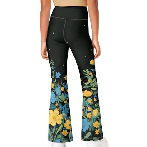 Flower Girls Flare Leggings Yoga Dance Pants Kids Bell Bottoms School Preppy Teen High Waist Athletic 7-14 Years 6