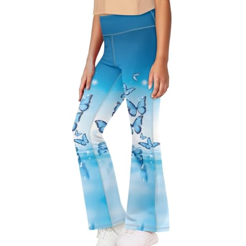 Butterfly Print Girls Print Flare Leggings Kids Elastic High Waisted Bell Bottoms Yoga Pants 6