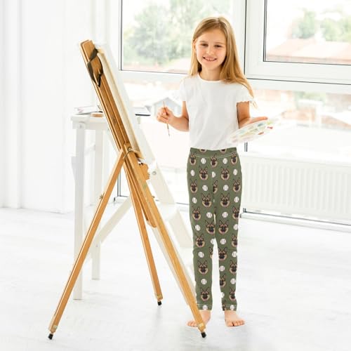Brown Dogs Baseball Pattern Girls Leggings Soft Comfortable Athletic Leggings Dancing Pants for 4-10 Years 3