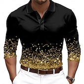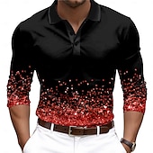 More information about Men's Jeweled 3D Digital Print Polo Shirts Golf Shirt Long Sleeve Polo Shirts Collared Shirts Casual Outdoor Party Evening Wear Dailywear Buttons 3D Print Spring Fall Winter Golden yellow Red Blue