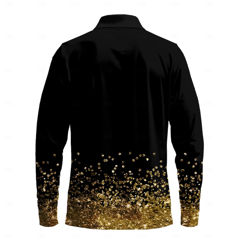 Men's Jeweled 3D Digital Print Polo Shirts Golf Shirt Long Sleeve Polo Shirts Collared Shirts Casual Outdoor Party Evening Wear Dailywear Buttons 3D Print Spring Fall Winter Golden yellow Red Blue 9