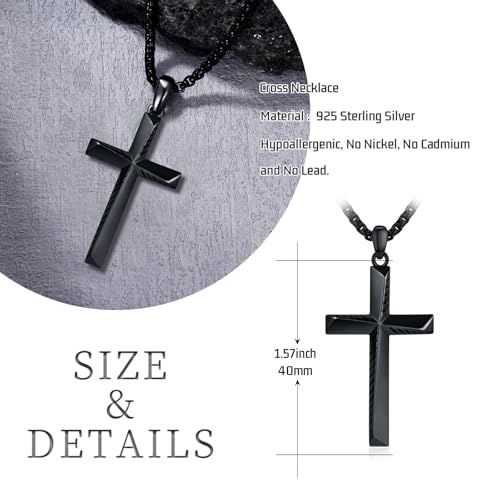 HOT ! Black Cross Necklace for Men 925 Sterling Silver Cross Pendant Necklace Cross Jewelry Gifts for Men Women