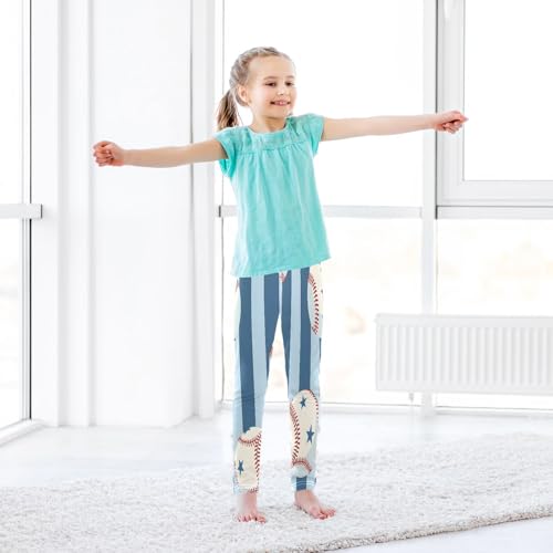 Toddler Girls Leggings Printed Yoga Pants Leggings Baseball Blue Background for Kids 7