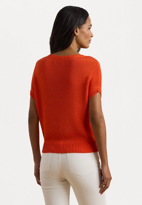 More information about RIB KNIT SHORT SLEEVE V NECK SWEATER - Basic T-shirt - orange