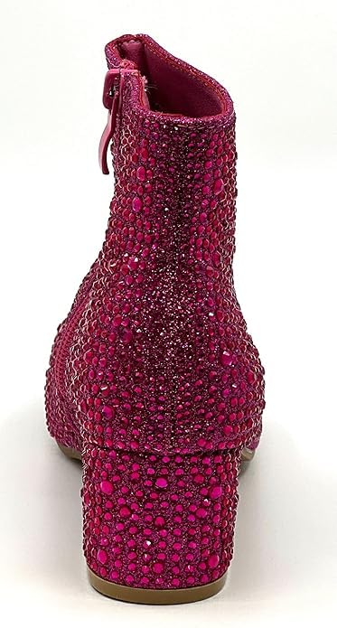 More information about Forever Girls Rhinestone Boots Kids Low Heel Dress Booties Iceberg-12K Shoes Fuchsia Rhinestone 10