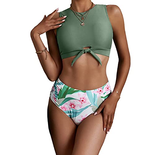 HOT ! Women's Cut Out Tie Knot Front Scoop High Neck Tank Crop Top Bikini Swimsuit Top Only