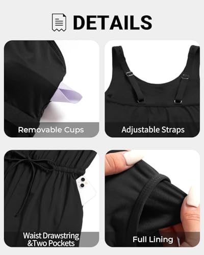 • Black Plus Size Romper Swimsuits: The swimsuit comes with removable padding, adjustable wide shoulder straps, pockets on both sides, an adjustable waist drawstring, ruched high-waisted design, and boy shorts.