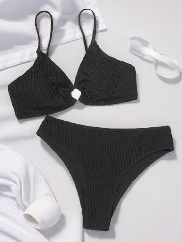 HOT ! Fanuerg Women's Ribbed Triangle Bikini Sets O Ring Linked Two Piece Swimsuit Textured Cheeky Swim Bathing Suit