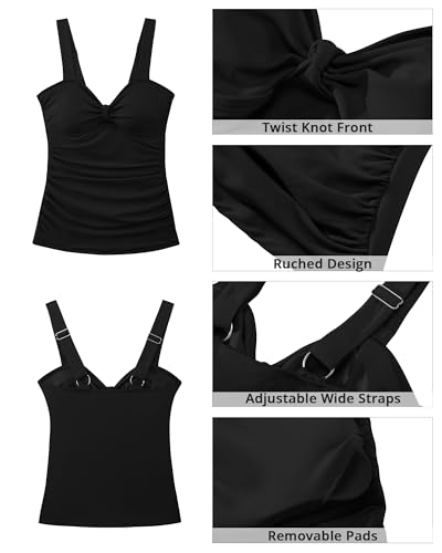 GRAPENT Tankini Tops for Women Twist Knot Ruched Swimsuits Beach Padded Adjustable Straps Modest Swimwear Swim Tops Only 4