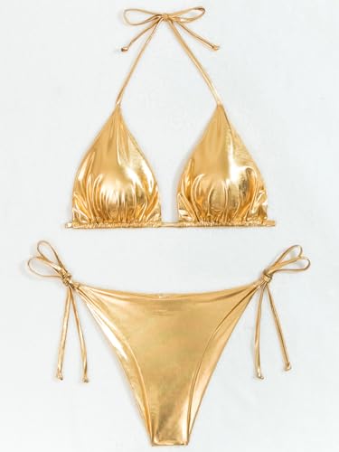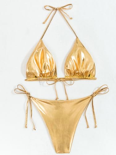 Rajputana Women Metallic Bikini Sets String Triangle Top and Bottoms Two Piece Swimsuit Bathing Suit 1