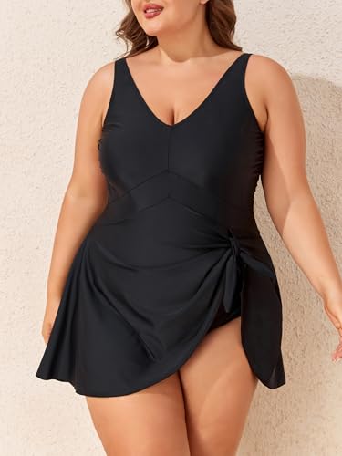 Smismivo Plus Size Swim Dress Tummy Control Swimsuit for Women One Piece Bathing Suit Modest Swim Skirt 6