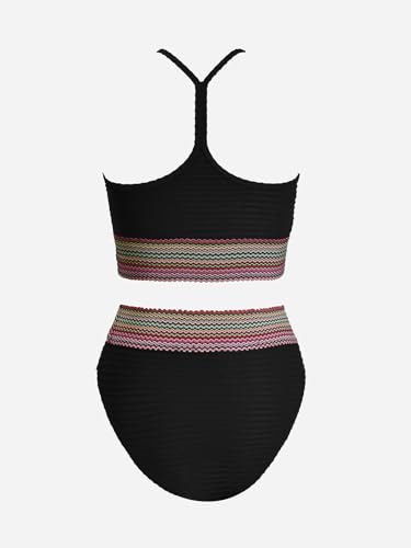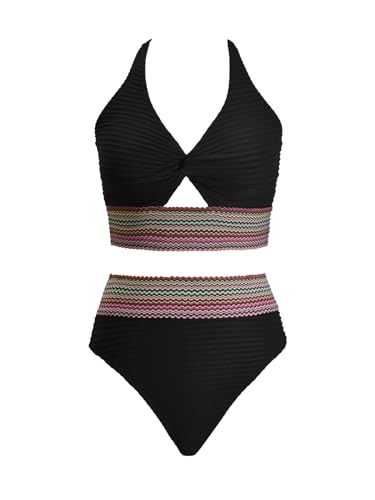 • Design: The V Neck Two Piece Swimsuit Features Keyhole on front and Colorful Banded Underbust Can Make You Flattering. Ribbed Fabric Bikini Sets with High Waisted Bottom Make You Feel Comfortable