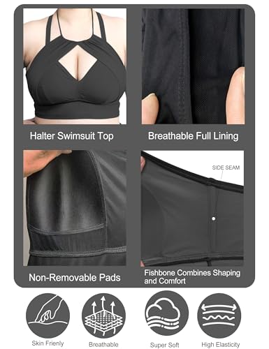 • Halter Swim Top :Womens bikini swimsuit top,push-up bikini tops, womens swimwear built in padded tops adjustable shoulder straps can fix the tankini top well