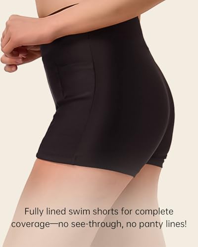 Women's Swim Shorts 2" High Waisted Tummy Control Bikini Swimsuit Bottoms Board Shorts Bathing Suit with Pockets 7