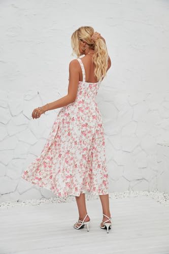 • DESIGN: Beautiful midi dress featuring a romantic square neckline, sleeveless silhouette, and delicate pink rose print on white background
