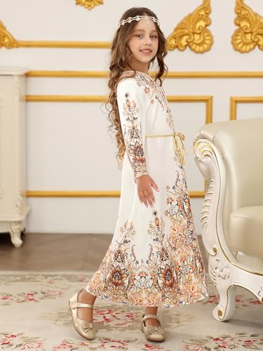 Muslim Dress for Kids Girls Abaya Middle East Ramadan Long Sleeve Prayer Dress Arabic Kaftan 4