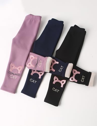 Kiench Girls Fleece Lined Pants Cotton Winter Warm Leggings High Waist 3