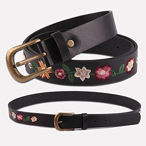 gofidin Women's PU Leather Waistband Casual Flower Embroidered Decoration Ladies Belt Versatile Fashion Retro Belt 1