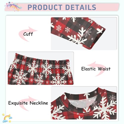 Pigsaly Pajama Set 2 Piece Red Black Buffalo Check Winter Snowflakes Plaid Pajama Sets Long Sleeve Pjs Sleepwear 3T 1