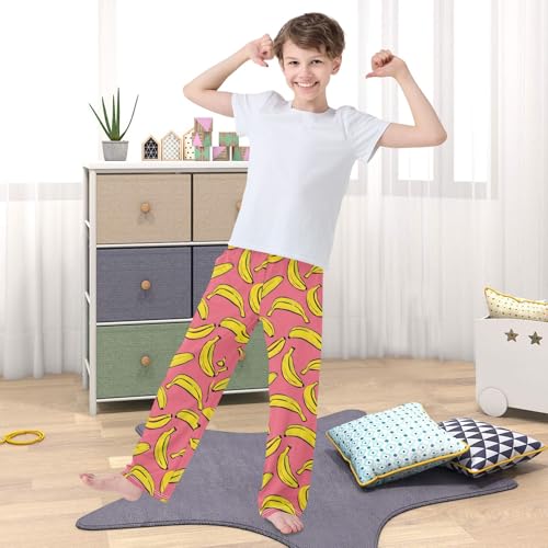 HOT ! Banana Cartoon Red Prints Pajama Pants Lounge Sleep Pants Elastic Waist Long Pajama Bottoms with Pockets for 6-14 Years