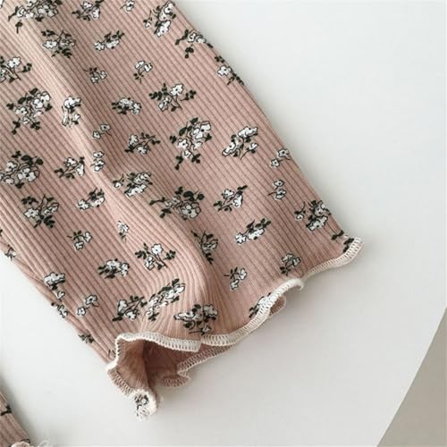 Kids Girls Floral Ribbed 𝐋ounge Set Knit Outfits Ruffle Trim Matching 𝐏a𝐣ama Set Short Sleeve Top and Pants 𝐋oun𝐠ewear 2
