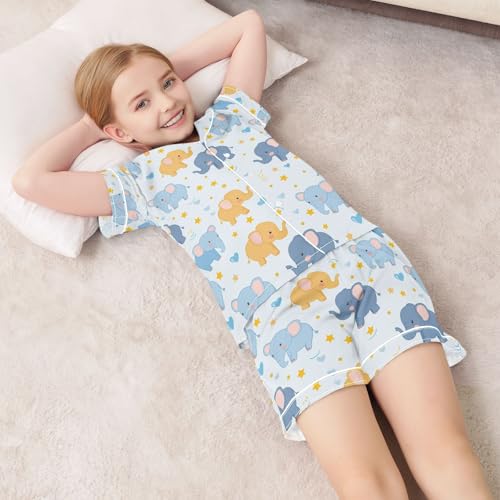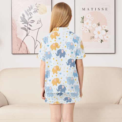 Cartoon Elephant Love Stars Pajamas Set Summer Button Down Sleepwear Pjs Sets Comfy Loungewear 3